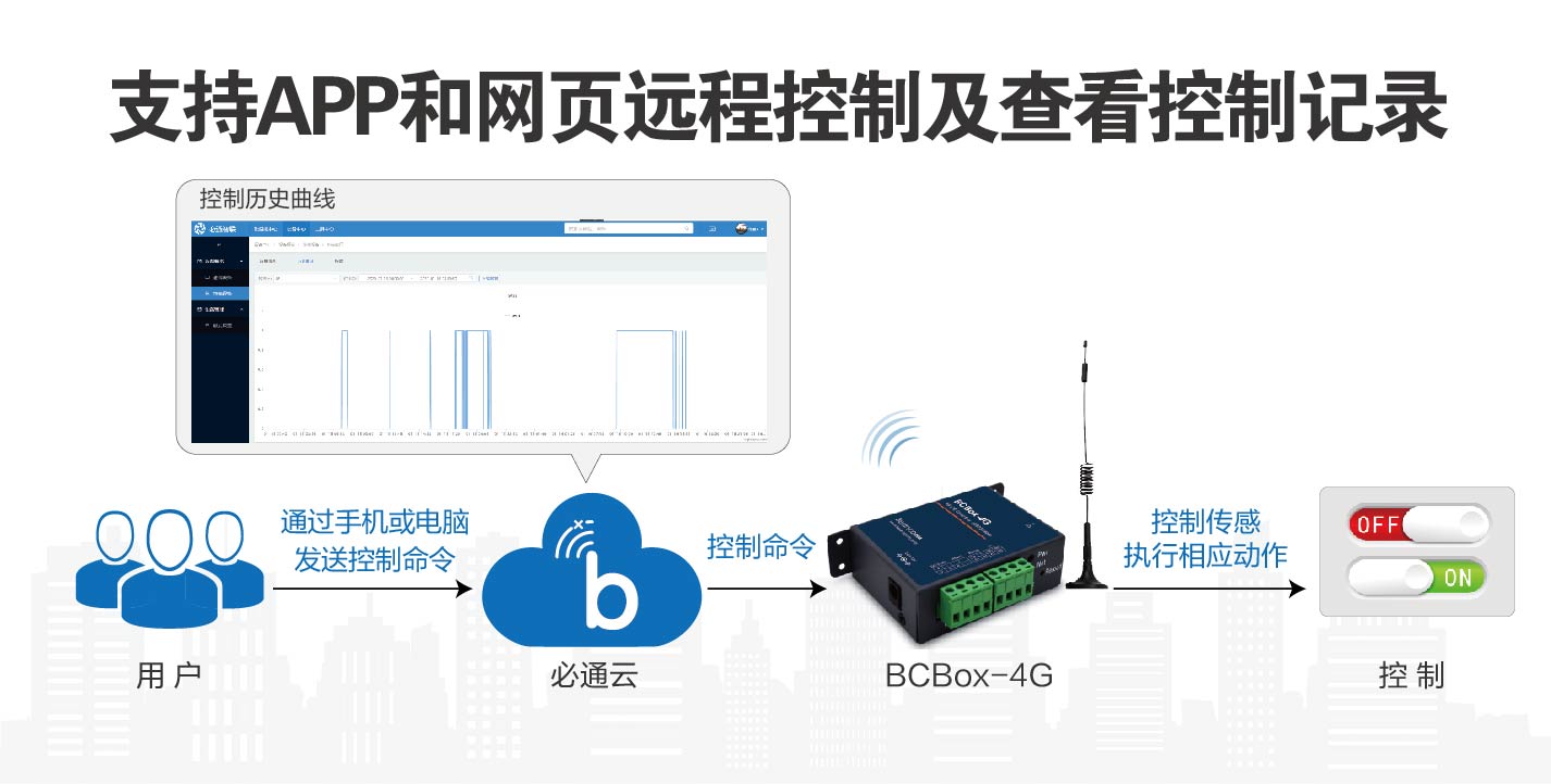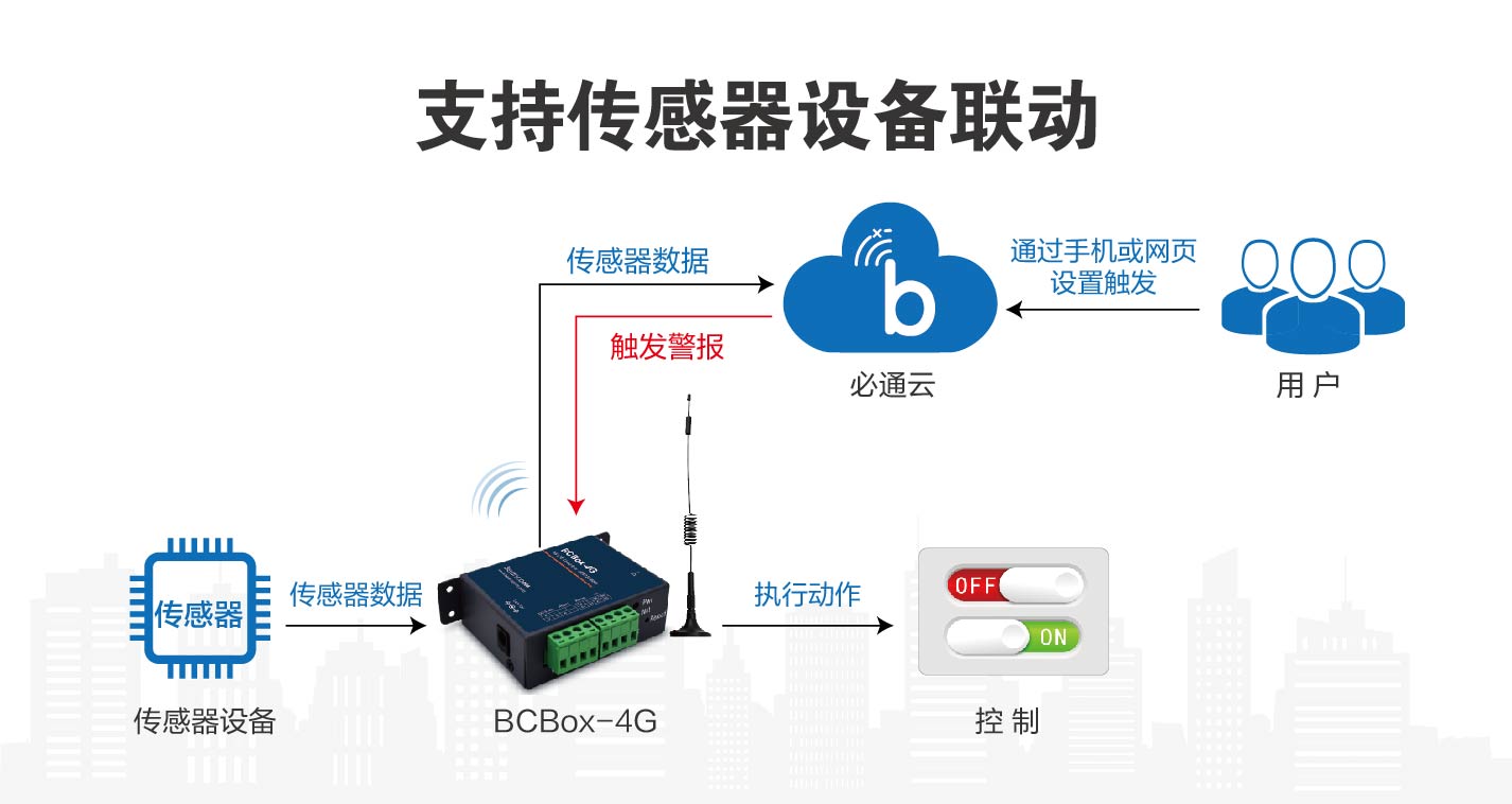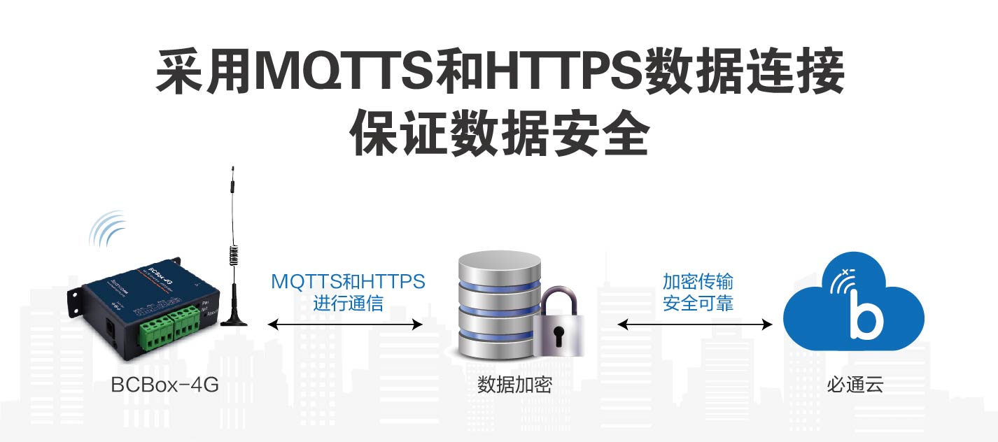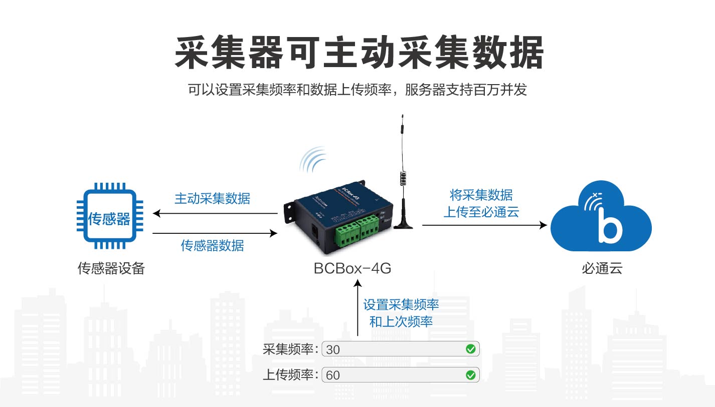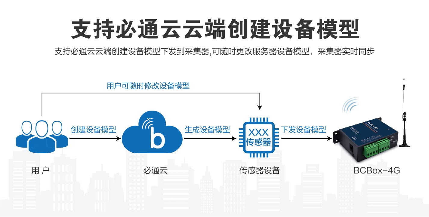 BCBox-4G是一款4G的导轨式DTU设备,采用RS485,RS232接口与设备通信,实现了串口到网络的双向数据透明传输,同时支持一路电源输出,可直接给外接设备供电。BCBox-4G支持移动、联通、电信4G/3G/2G接入,工作在4G网络时具有速度快、延时低的特点,适用于需要传输大数据量、响应及时的场景。 BCBox-4G使用简单,可以通过蓝牙动态配置工作参数、查询工作状态,省去额外接线,方便用户安装调试。 BCBox-4G内部集成了必通云物联网中性云平台,支持采集所有ModbusRTU类传感器以及其他设备。必通云云端创建设备模型下发到BCBox-4G,通过网页添加或者手机扫码添加之后,BCBox-4G即可主动采集数据,一个BCBox-4G设备可以同时采集多个设备,支持网页客户端和手机端服务,可以在网页或者手机端查看设备数据以及控制设备,完成对设备的采集监控。同时,必通云支持触发报警功能,当设备出现异常时将通过app推送、微信、短信、 电话等方式通知用户,方便用户及时管理和维护设备。另外,BCBox-4G支持远程升级。